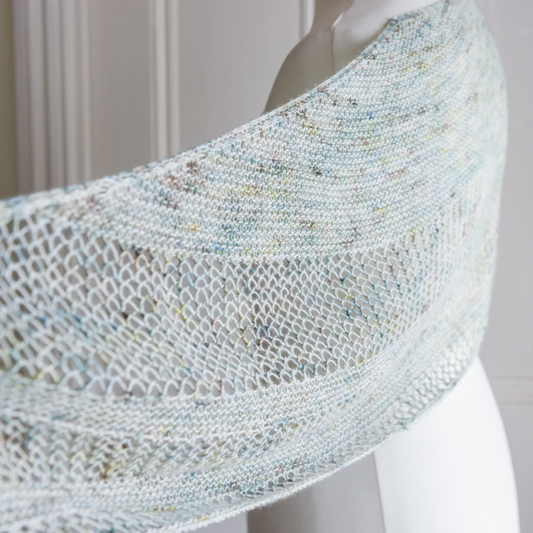 Wool and silk blends always work like a charm. For a dressier shawl with even more drape and shine, you could use a 100% silk yarn. Or if you want a more rustic and natural look, how about Brooklyn Tweed Loft?